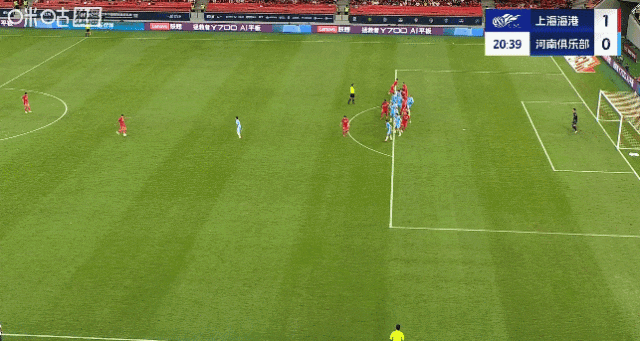 第21分钟,维塔尔定位球开出,王燊超机敏前插头球破门,海港1比0领先河南!